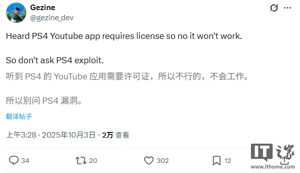 IT之家查询获悉,Gezine 因创建 Lua 漏洞而闻名,此前还曾推出基于光驱漏洞的 PS4 越狱工具 BD-JB,具备长期 PlayStation 主机破解经验。